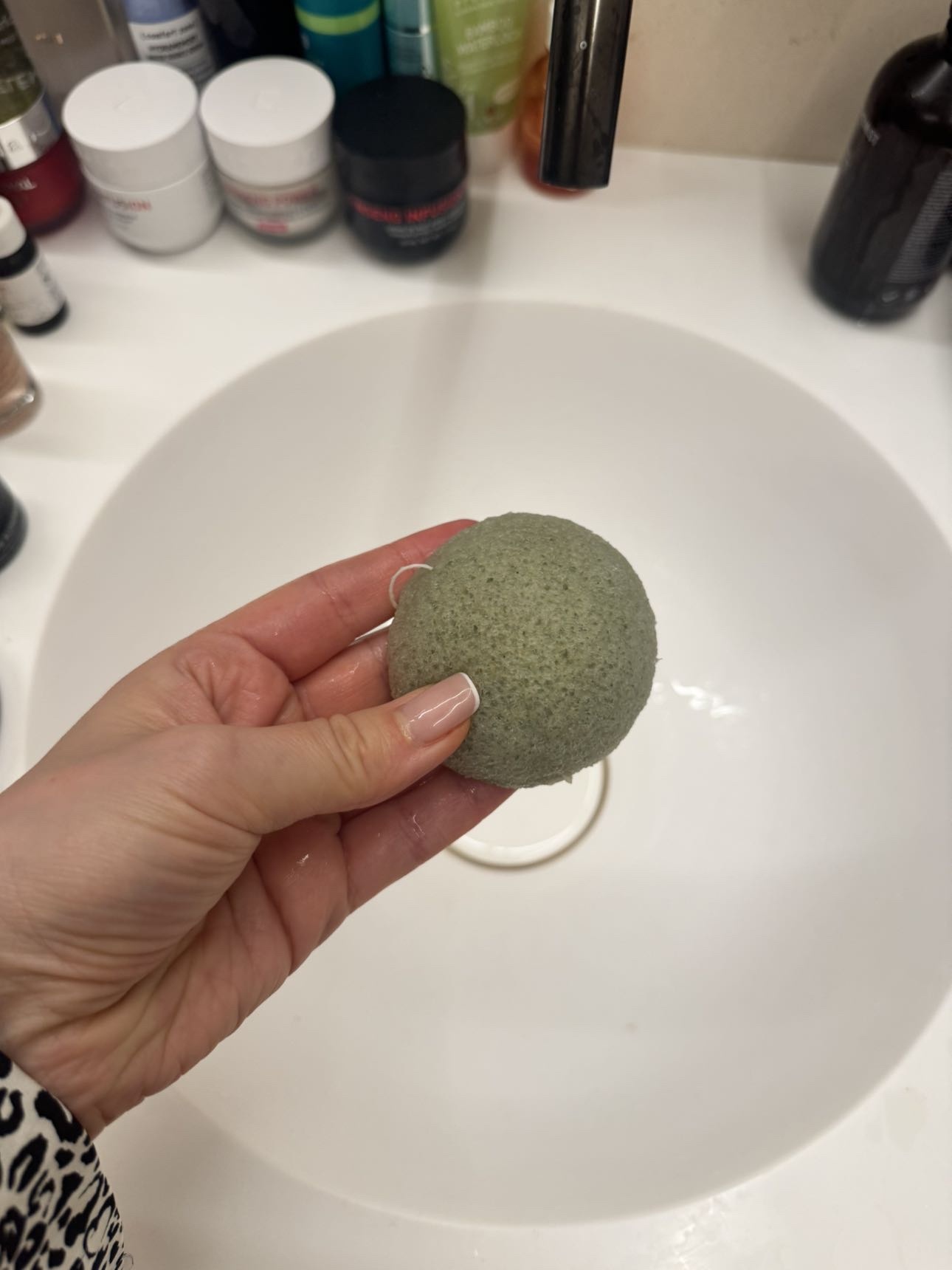 Зеленый спонж сделан из волокон конняку с добавлением зеленого чая.